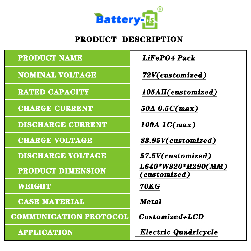 72V 105AH LiFePO4 Lithium Iron Battery Pack For Golf Cart